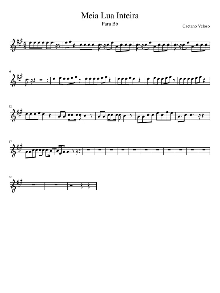Partitura de Meia Lua Inteira do Caetano Veloso para Bb Tom pra instrumentos em Bb: A maior Medidas aproximadas