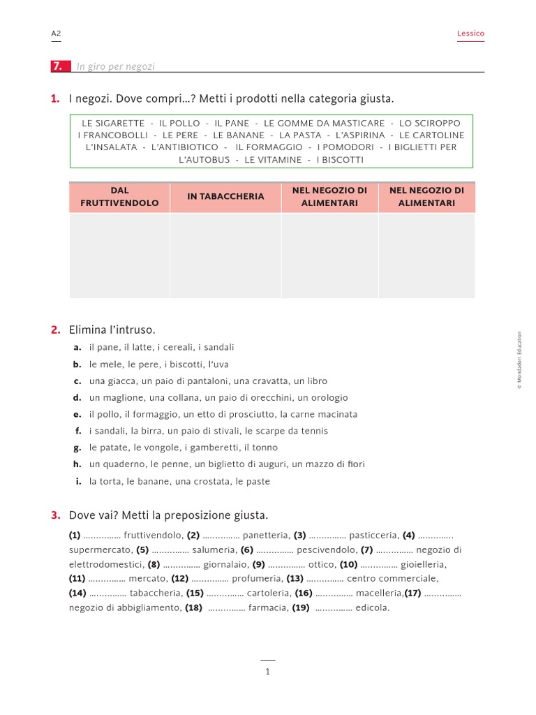 1. I negozi. Dove compri? Metti i prodotti nella categoria giusta.