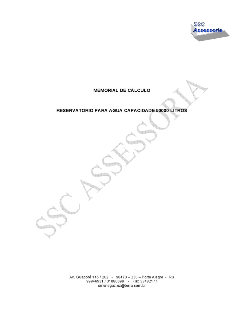 1. OBJETIVO O presente memorial de cálculo objetiva demonstrar a segurança dimensional do reservatório a ser instalado na unidade industrial da empresa contratante deste trabalho.