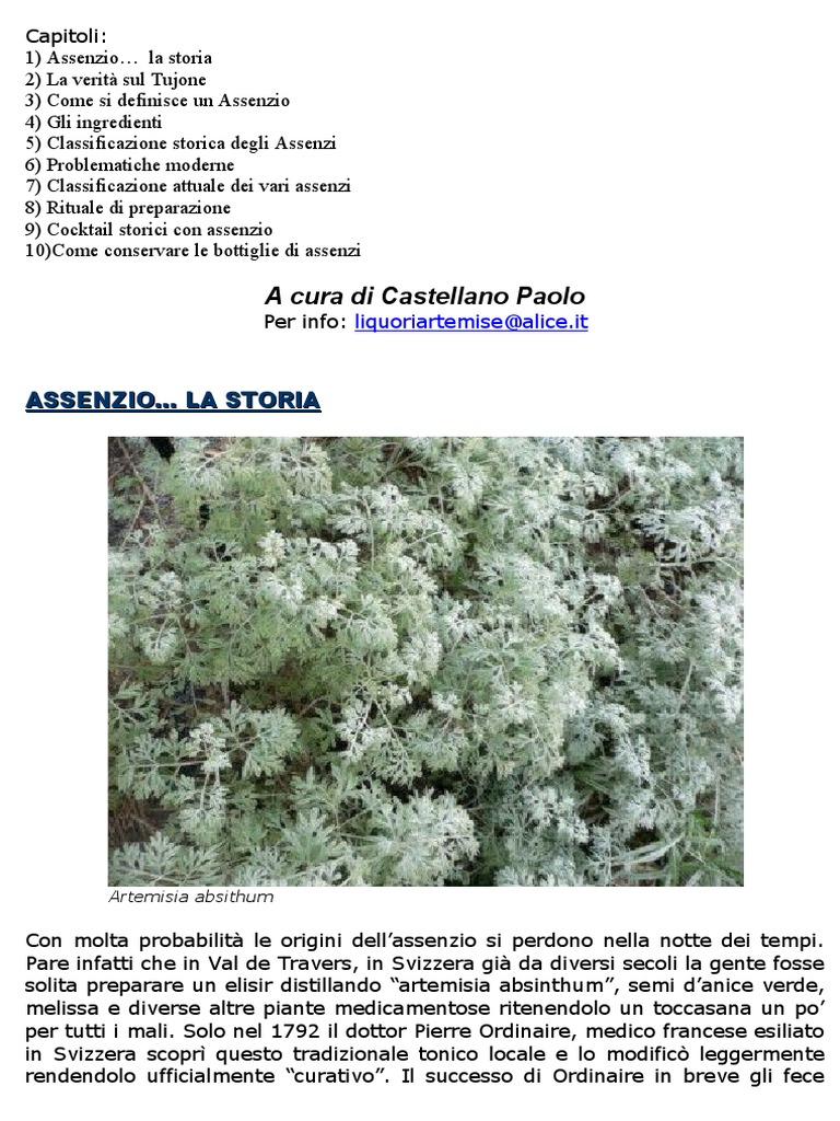 con acqua ed eventualmente addolcito tra gli amici e i parenti. Lassenzio inizi