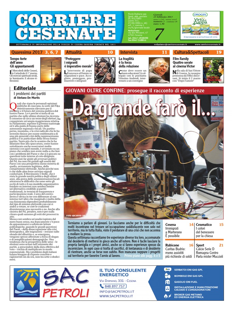 da appassionarsi a sofisticate letture Torniamo a parlare di giovani. Lo facciamo anche per le difficolt che Cesena 14 Cesenatico 15