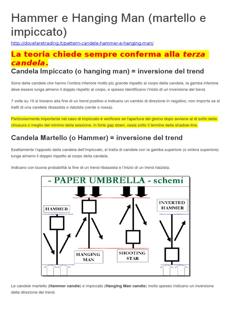 Le candele martello (Hammer candle) e impiccato (Hanging Man candle) molto spesso indicano un inversione