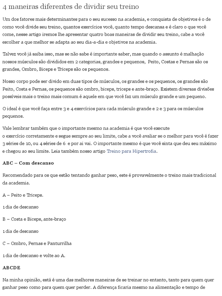come, nesse artigo iremos lhe apresentar quatro boas maneiras de dividir seu treino, cabe a voc