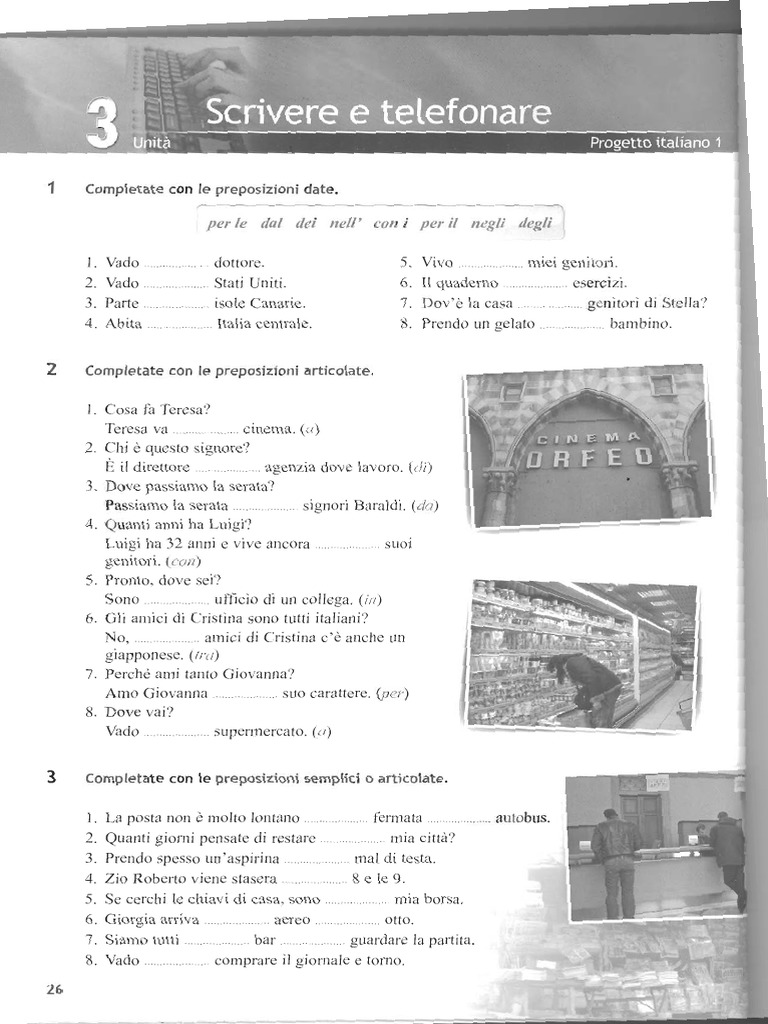 ¢) ci Sono ¢) tengo.Scrivere e telefonare