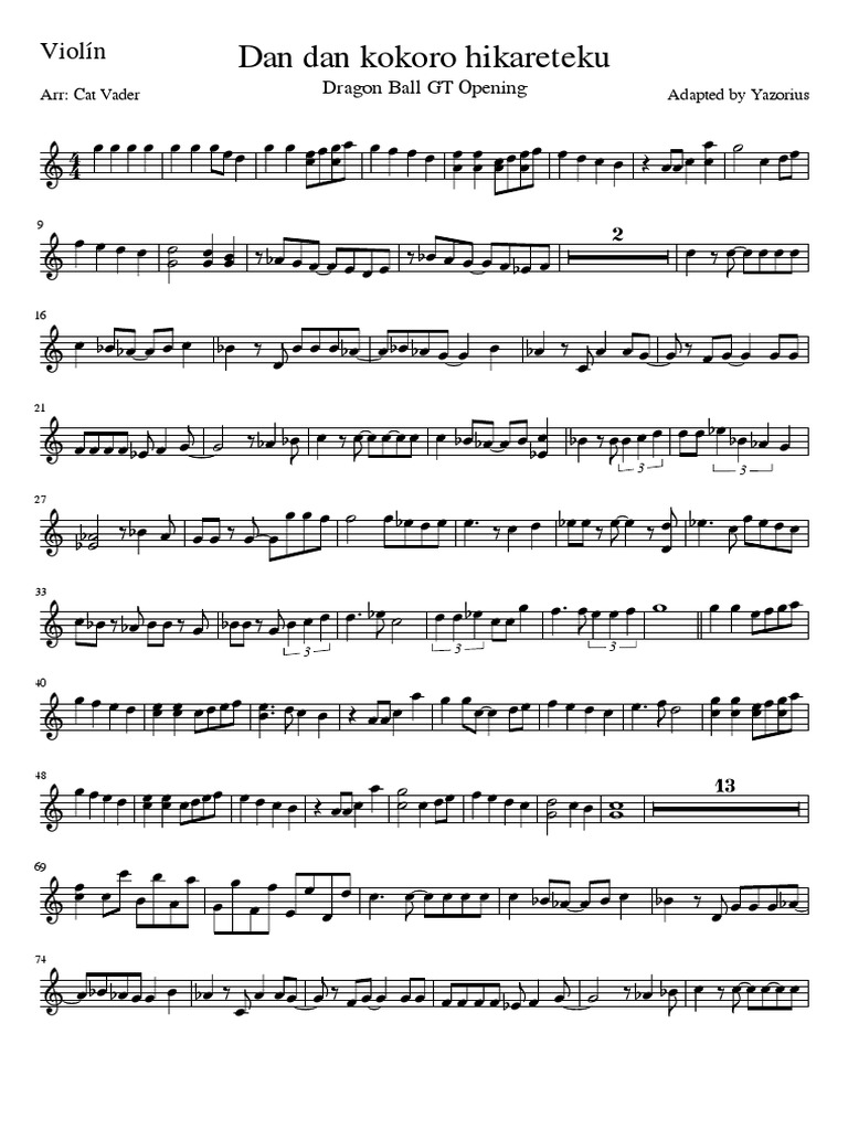 Il documento contiene le note musicali per la canzone Dragon Ball GT Opening. Le note sono organizzate in righe numeriche con simboli musicali che indicano la nota e la durata. Il documento non contiene testo aggiuntivo.