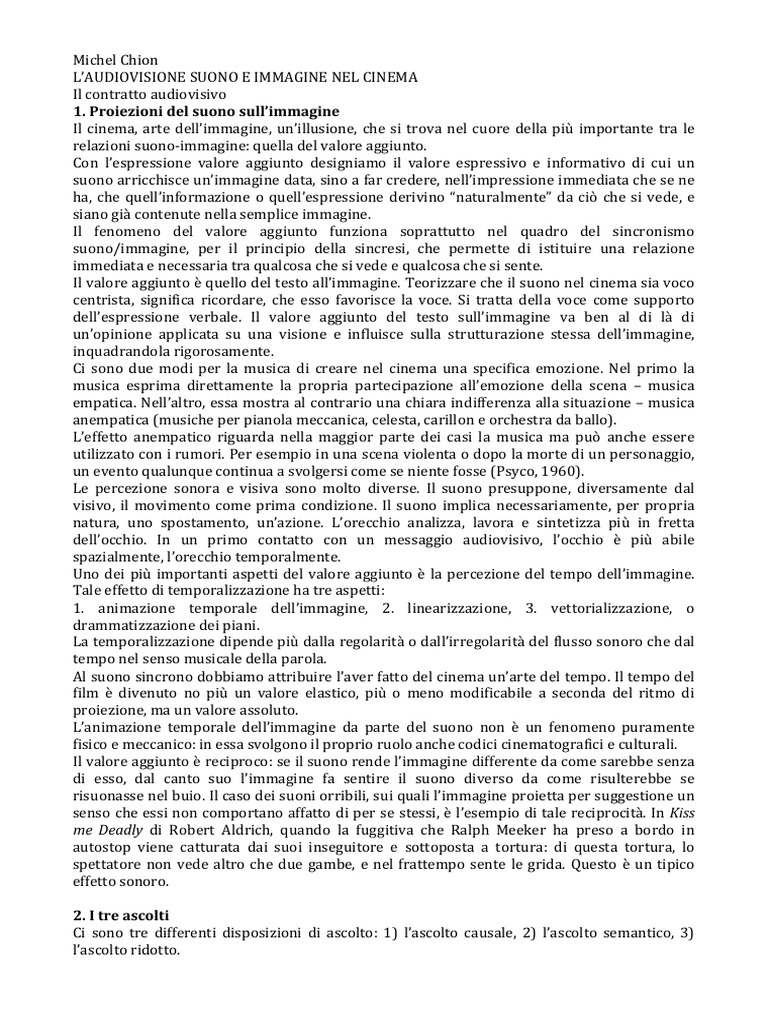 Il valore aggiunto quello del testo allimmagine. Teorizzare che il suono nel cinema sia voco