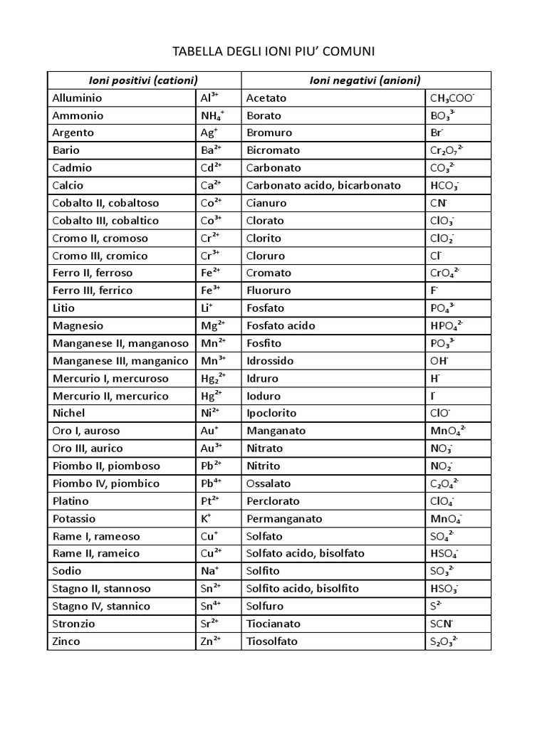 Ioni positivi (cationi) Ioni negativi (anioni)