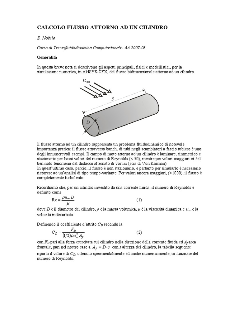 Il flusso attorno ad un cilindro rappresenta un problema fluidodinamico di notevole