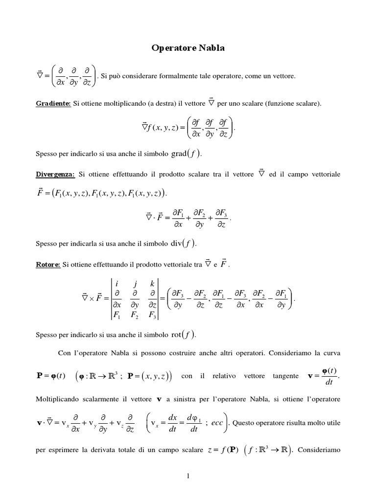 = , , . Si pu considerare formalmente tale operatore, come un vettore.