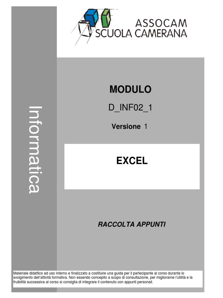 Assocam Scuola Camerana, Modulo Excel, UD4 -5