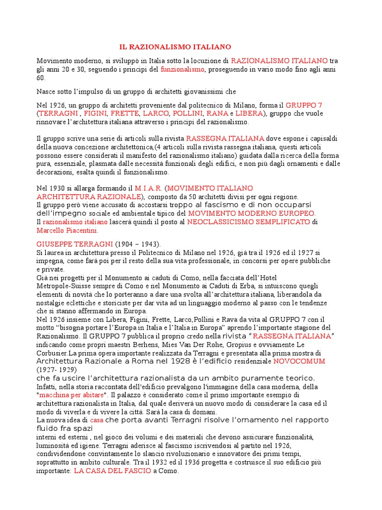 Movimento moderno, si svilupp in Italia sotto la locuzione di RAZIONALISMO ITALIANO tra