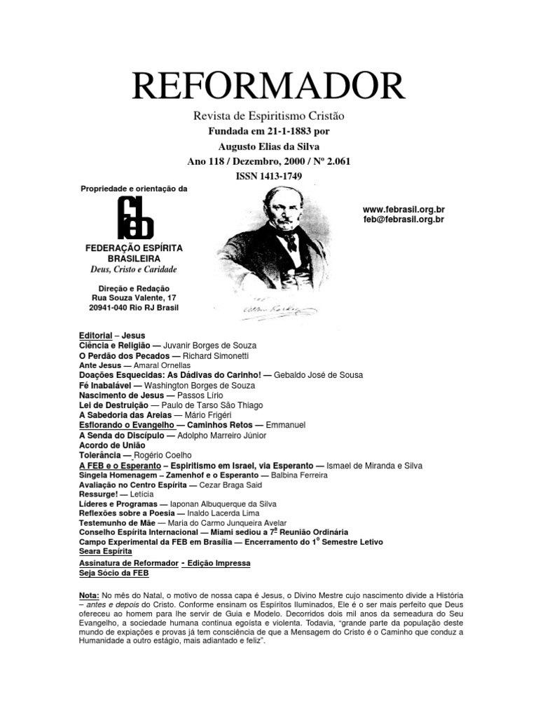 Nota: No mês do Natal, o motivo de nossa capa é Jesus, o Divino Mestre cujo nascimento divide a História