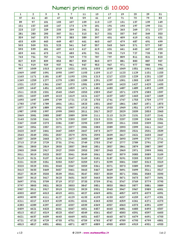 Numeri primi minori di 10.000