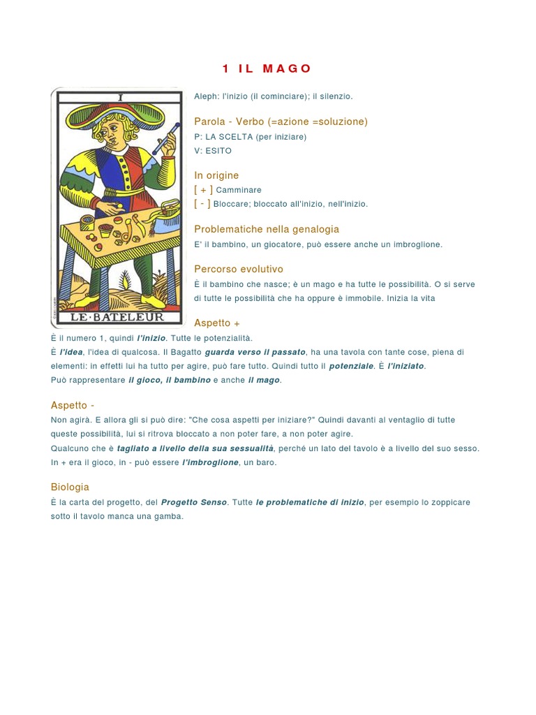 l'idea, l'idea di qualcosa. Il Bagatto guarda verso il passato, ha una tavola con tante cose, piena di