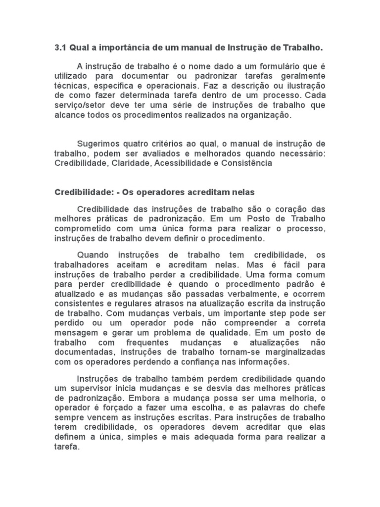 instrues de trabalho perder a credibilidade. Uma forma comum