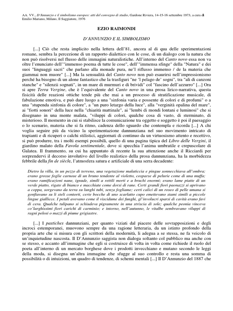 AA. VV., DAnnunzio e il simbolismo europeo: atti del convegno di studio, Gardone Riviera, 14-15-16 settembre 1973, a cura di