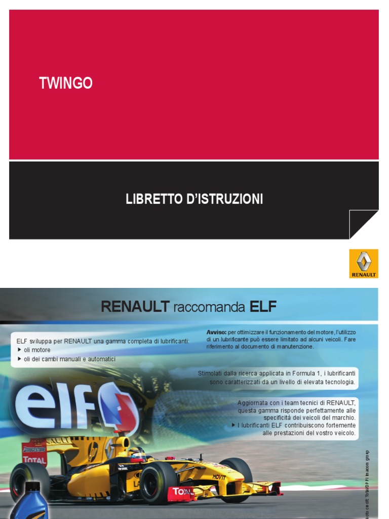 ELF sviluppa per RENAULT una gamma completa di lubrificanti: di un lubrificante pu essere limitato ad alcuni veicoli. Fare