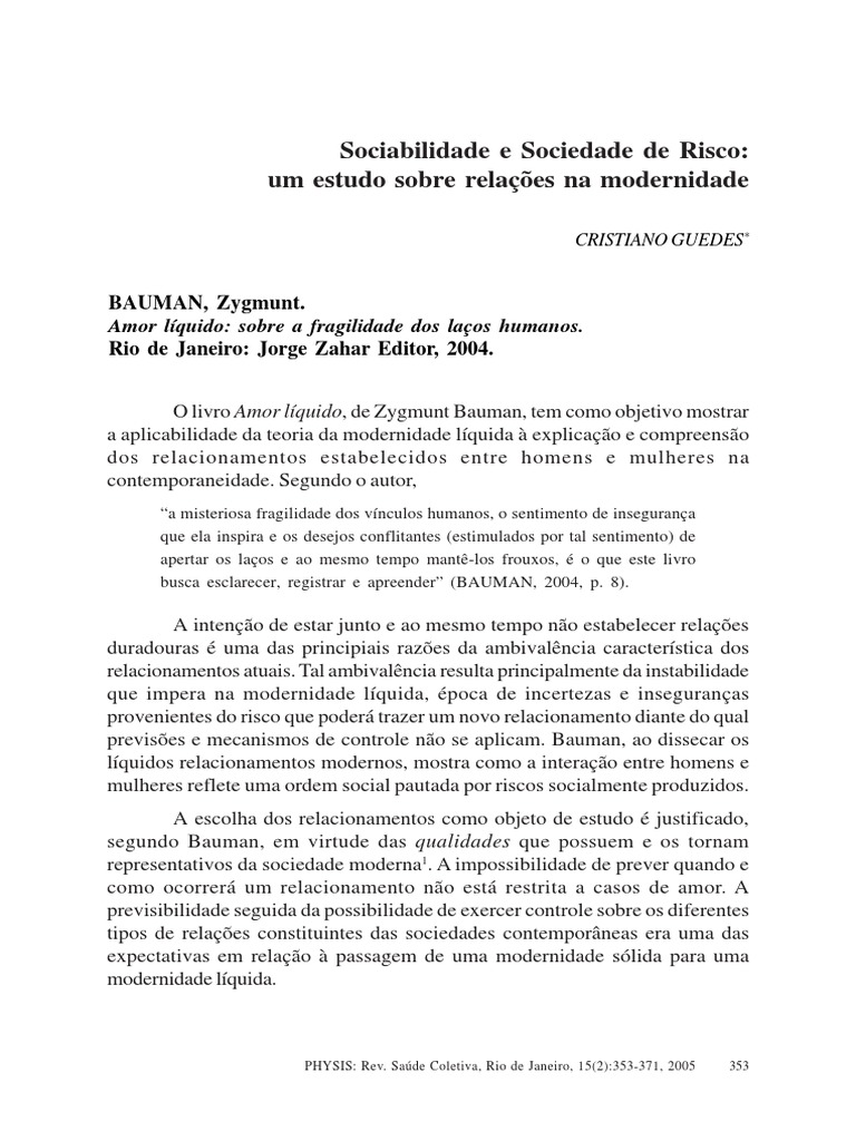 do livro. Amor lquido analisa sociedades modernas a partir dos relacionamentos