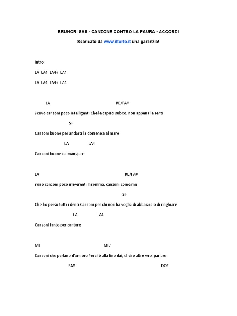 BRUNORI SAS - CANZONE CONTRO LA PAURA - ACCORDI