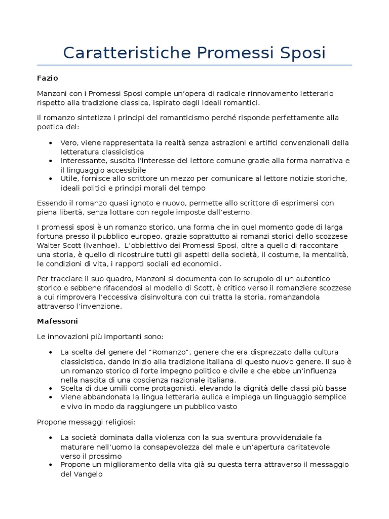 Caratteristiche Promessi Sposi