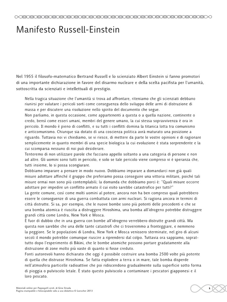 Nel 1955 il filosofo-matematico Bertrand Russell e lo scienziato Albert Einstein si fanno promotori