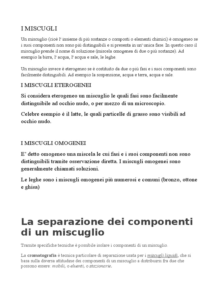 Un miscuglio (cio l' insieme di pi sostanze o composti o elementi chimici) omogeneo se