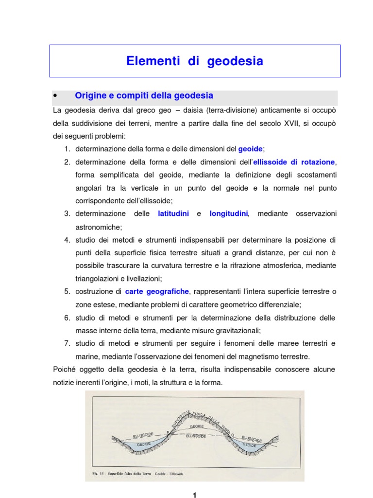 Poiché oggetto della geodesia è la terra, risulta indispensabile conoscere alcune