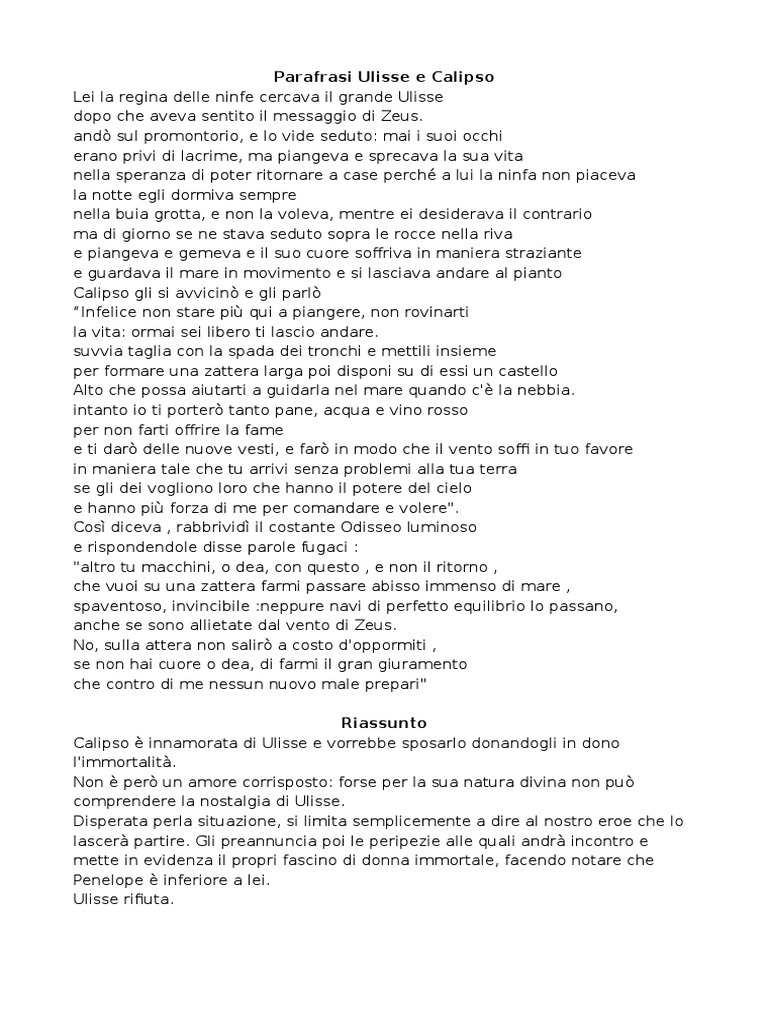 Parafrasi Ulisse e Calipso