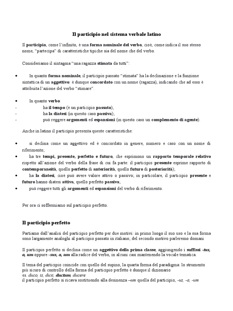 Partiamo dallanalisi del participio perfetto per due motivi: in primo luogo il suo uso e la sua forma