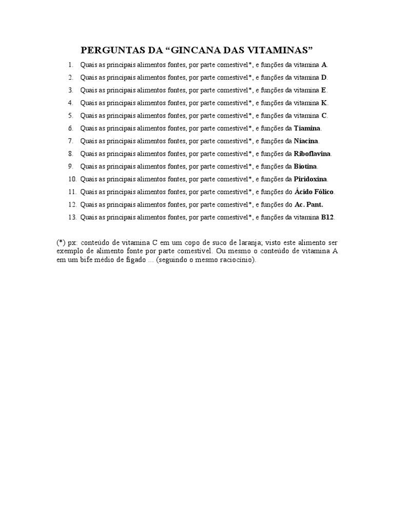 PERGUNTAS DA GINCANA DAS VITAMINAS