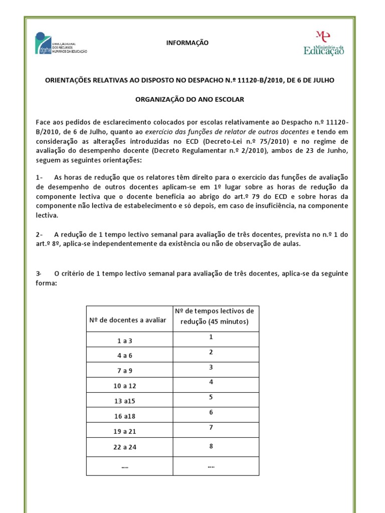 avaliação de docentes até uma redução máxima de 8 tempos lectivos;