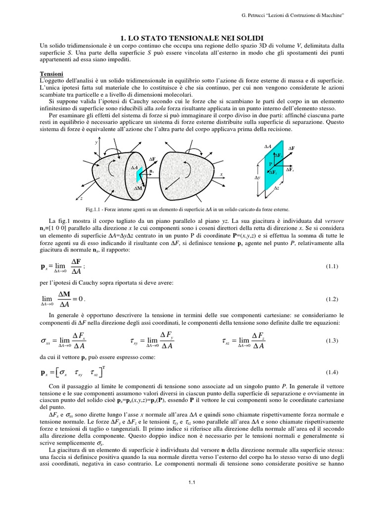 tensione e le sue componenti assumono valori diversi in ciascun punto della superficie di separazione e ovviamente in