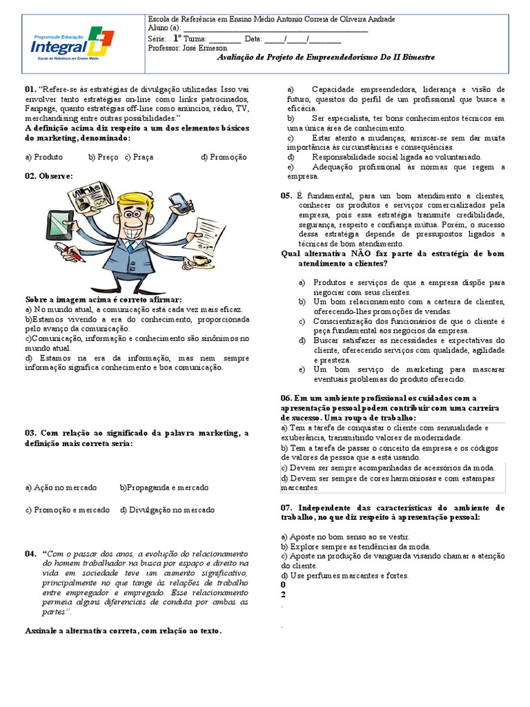 c) Promoo e mercado d) Divulgao no mercado 07. Independente das caractersticas do ambiente de