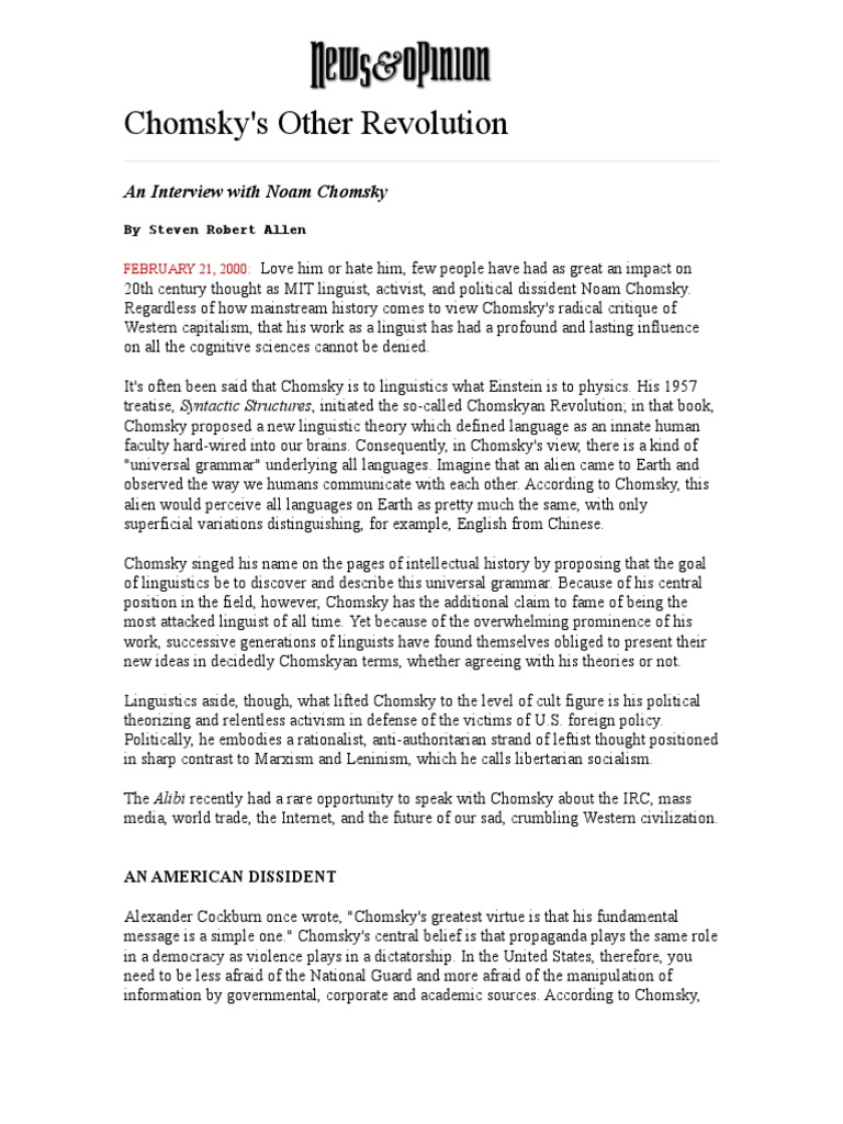 The Alibi recently had a rare opportunity to speak with Chomsky about the IRC, mass