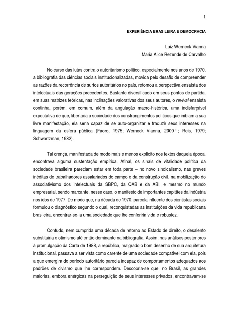 do Dficit Democrtico no Brasil. In: WERNECK VIANNA, Luiz (ORG.), A Democracia