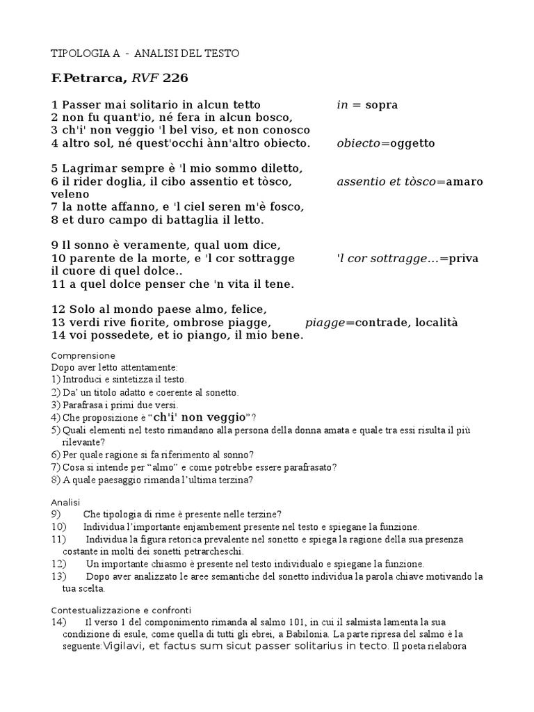 13) Dopo aver analizzato le aree semantiche del sonetto individua la parola chiave motivando la