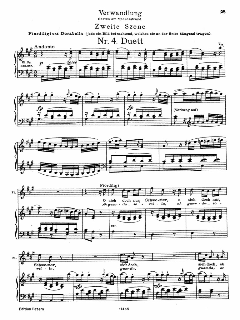 Fiordiligi und Dorabella (jede ein Bild betrachtend, welches sie an der Seite hiingend tragen).