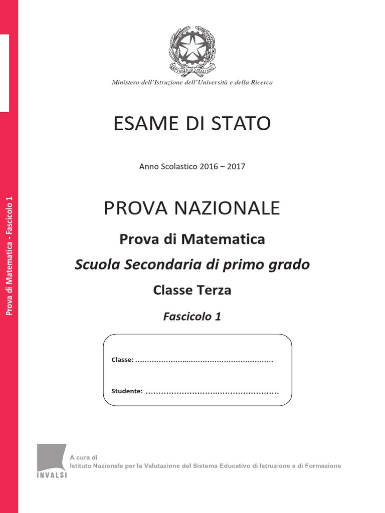 Prova di Matematica - Fascicolo 1