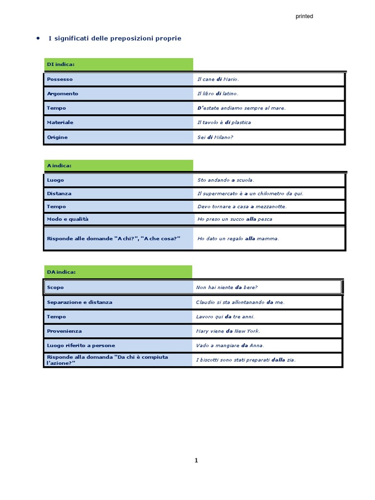 I significati delle preposizioni proprie