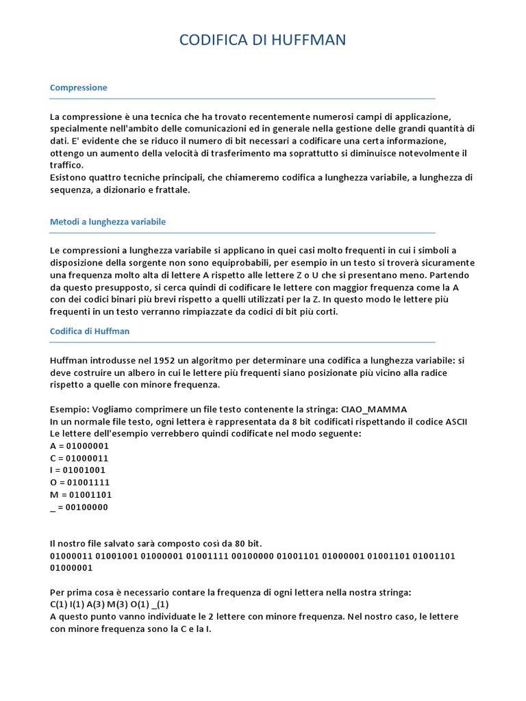 Huffman introdusse nel 1952 un algoritmo per determinare una codifica a lunghezza variabile: si