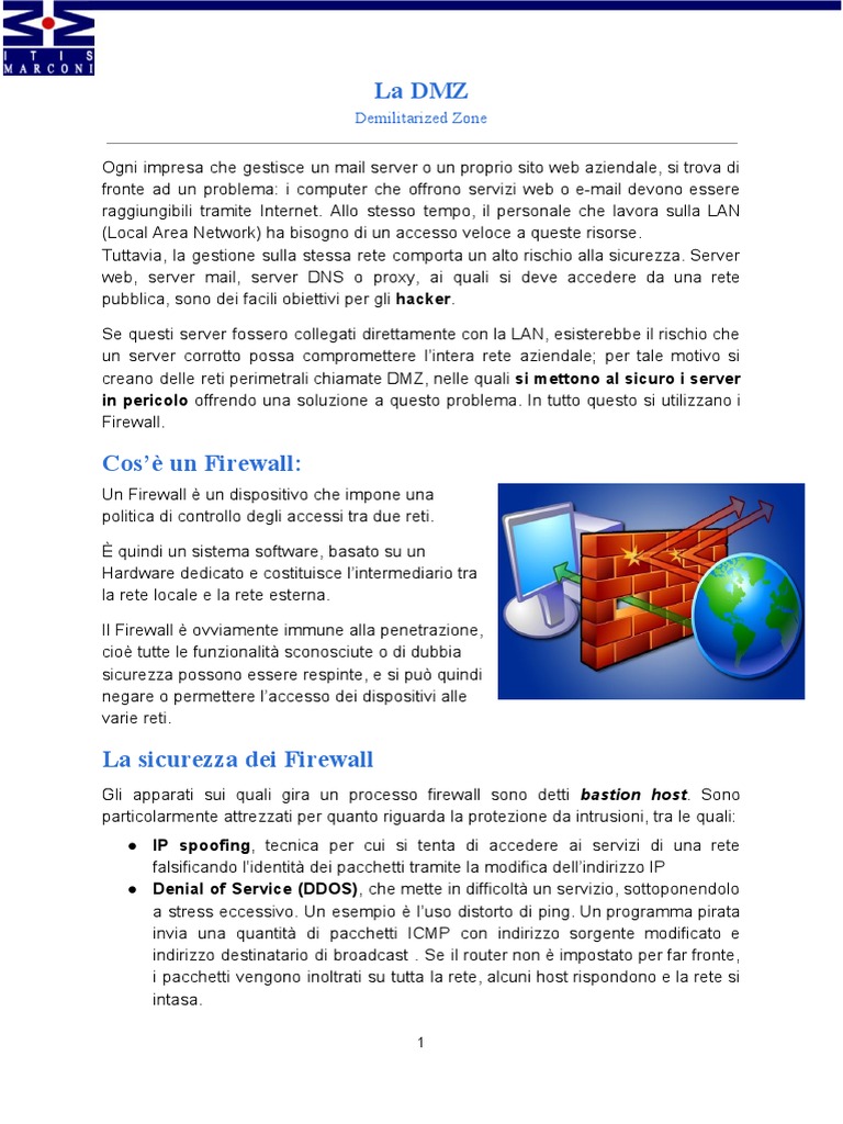 Inoltre, consigliato lutilizzo di due firewall di diversi produttori, per evitare lo