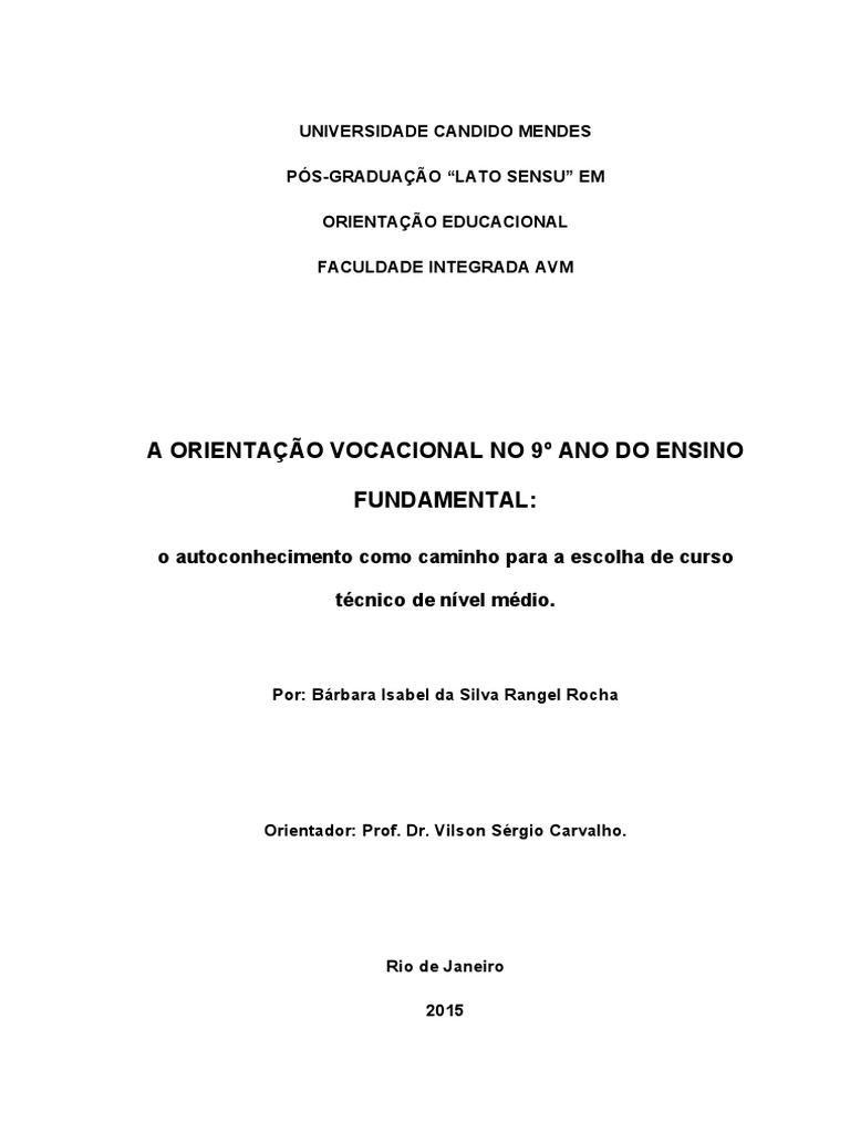 Orientao Vocacional, do Curso Orientao Educacional. AVM, Rio de