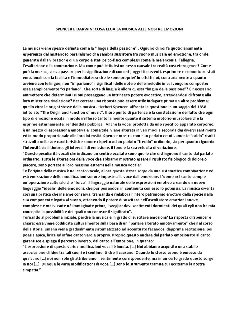 legge e cita il saggio di Spencer nel paragrafo in cui affronta il tema della musica, condividendone