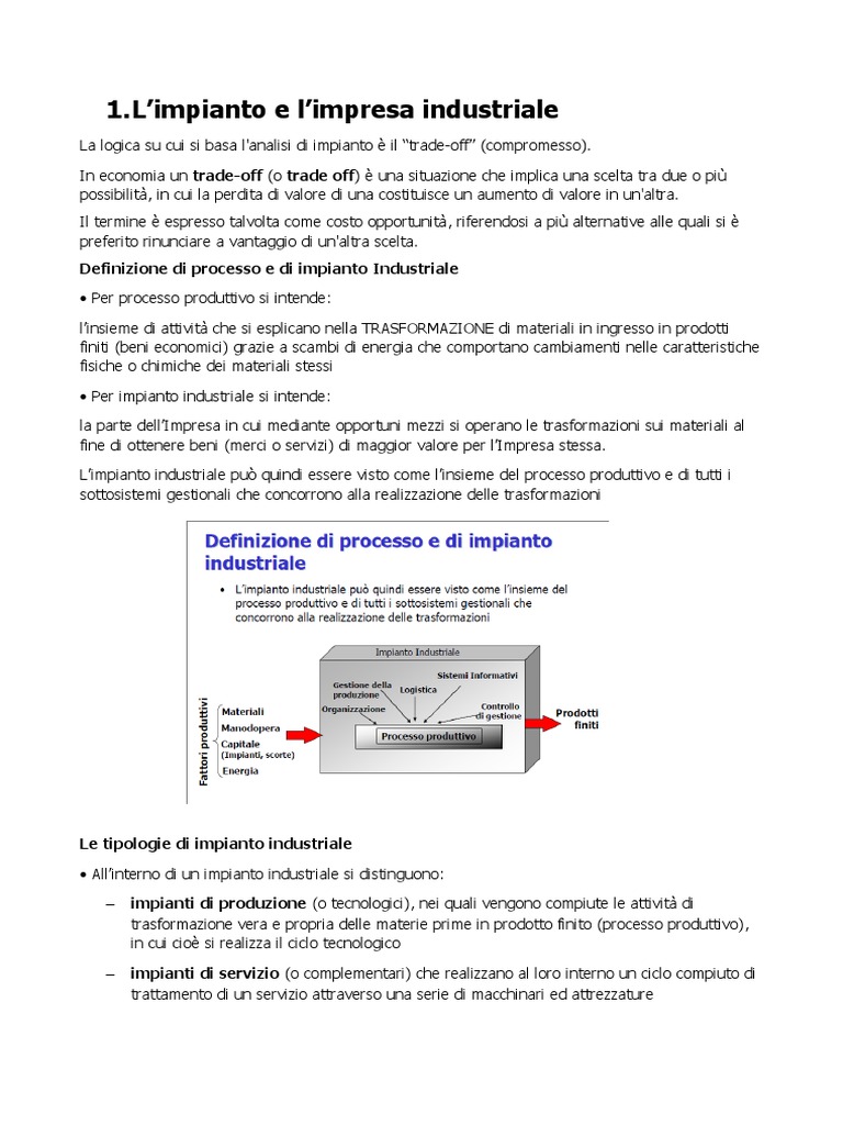 Limpianto industriale pu quindi essere visto come linsieme del processo produttivo e di tutti i