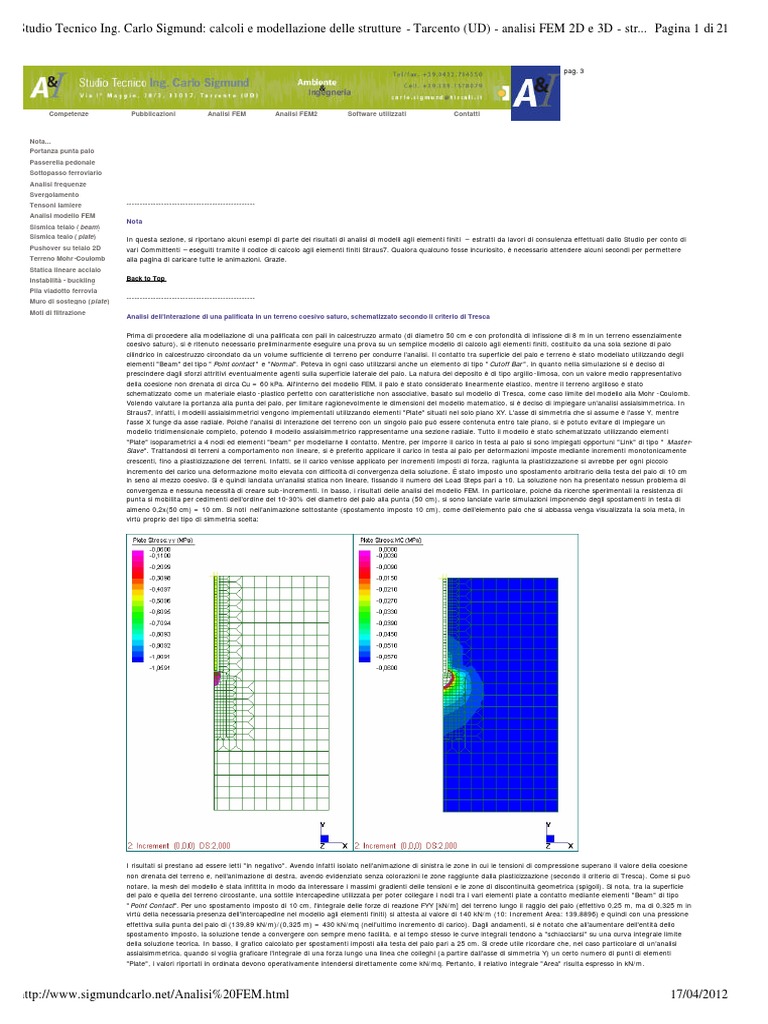 Studio Tecnico Ing. Carlo Sigmund: calcoli e modellazione delle strutture - Tarcento (UD) - analisi FEM 2D e 3D - str... Pagina 2 di 21