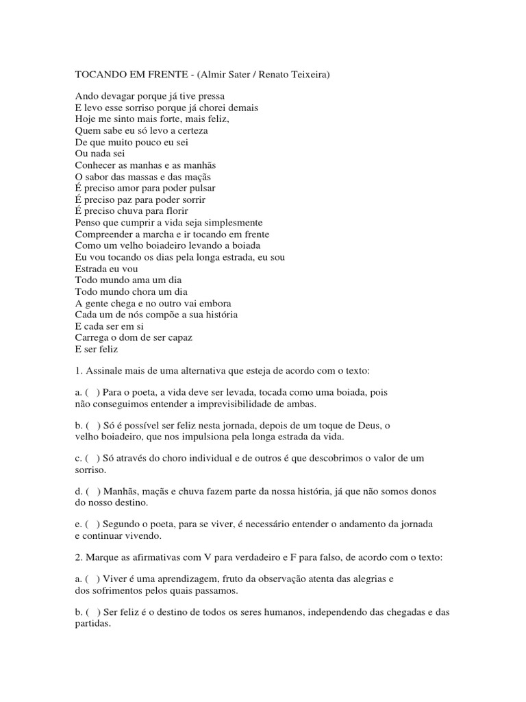 e. ( ) Segundo o poeta, para se viver, necessrio entender o andamento da jornada