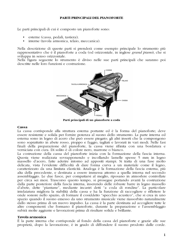 di un pianoforte a coda o verticale. Nel primo, la tastiera e i martelletti vengono