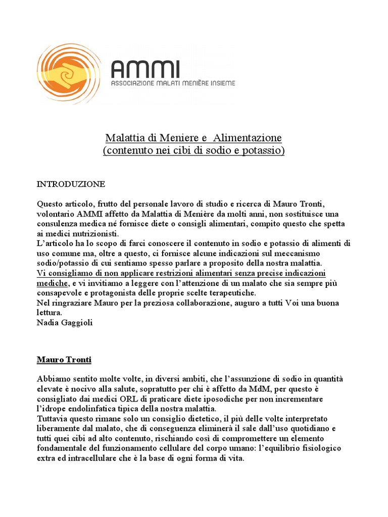 Malattia di Meniere e Alimentazione