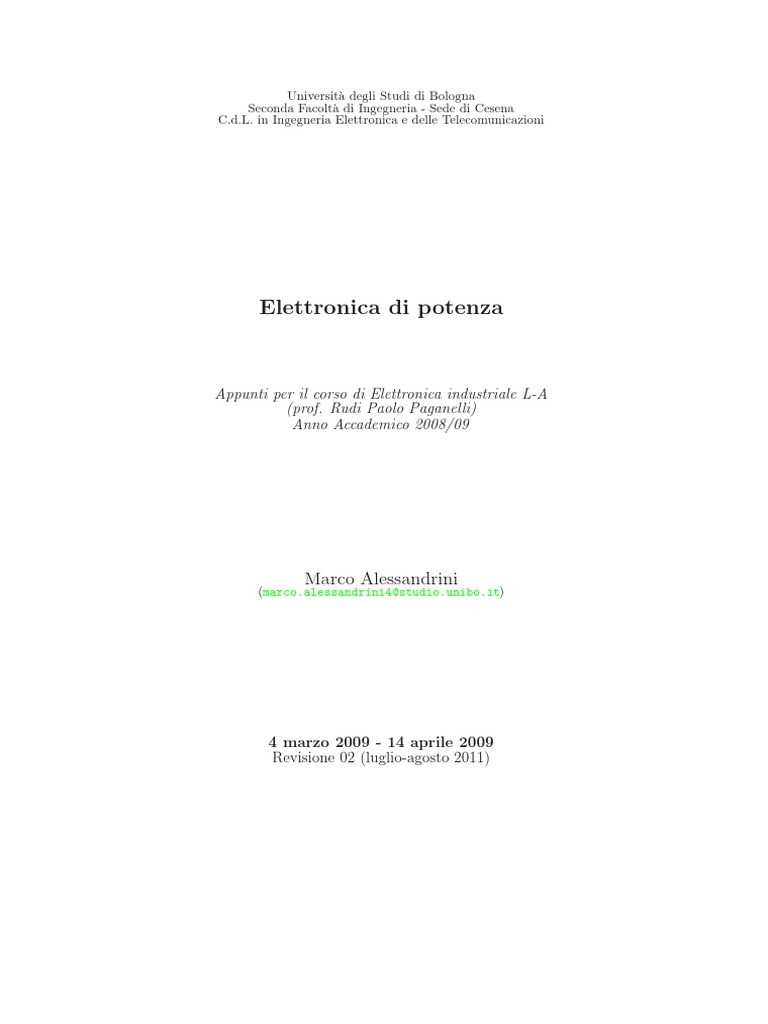 Un circuito di potenza controlla il trasferimento della potenza dallalimentazione al carico. Si puo