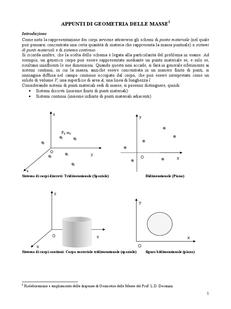 Rielaborazione e ampliamento della dispensa di Geometria delle Masse del Prof. L.D. Decanini